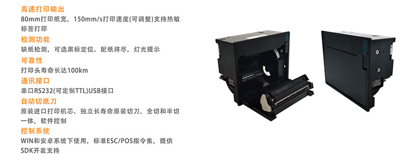 主要性能:80mm寬打印,150mm/s打印速度,打印壽命長(zhǎng)達(dá)100km
