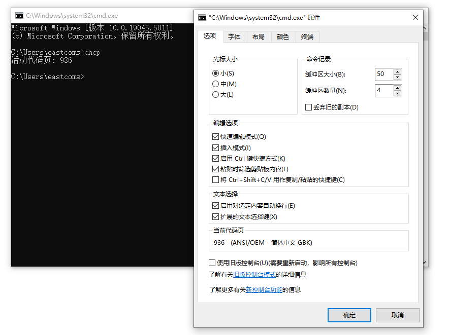 1、打開cmd,輸入chcp,顯示936(GBK簡(jiǎn)體中文),如果顯示其他,則會(huì)顯示中文亂碼