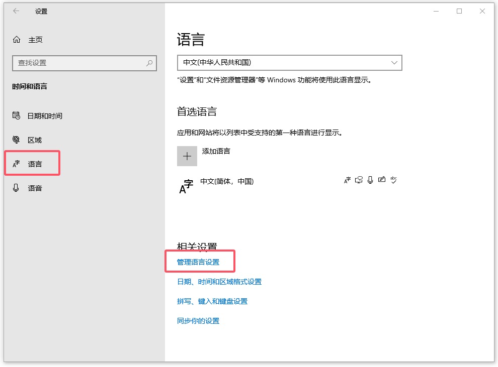 3、打開語(yǔ)音>>管理語(yǔ)言設(shè)置